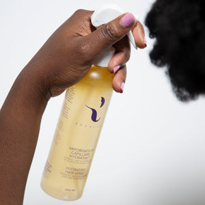 Formerly called NI, our hydrating hair spray is a simple solution for those looking to hydrate their hair, especially for those who don't have time for a full routine. This easy formula detangles hair and naturally hydrates it. It is also ideal for locs, protective hairstyles and braids. It leaves no sticky residue and provides all hair styles with the moisture they need.